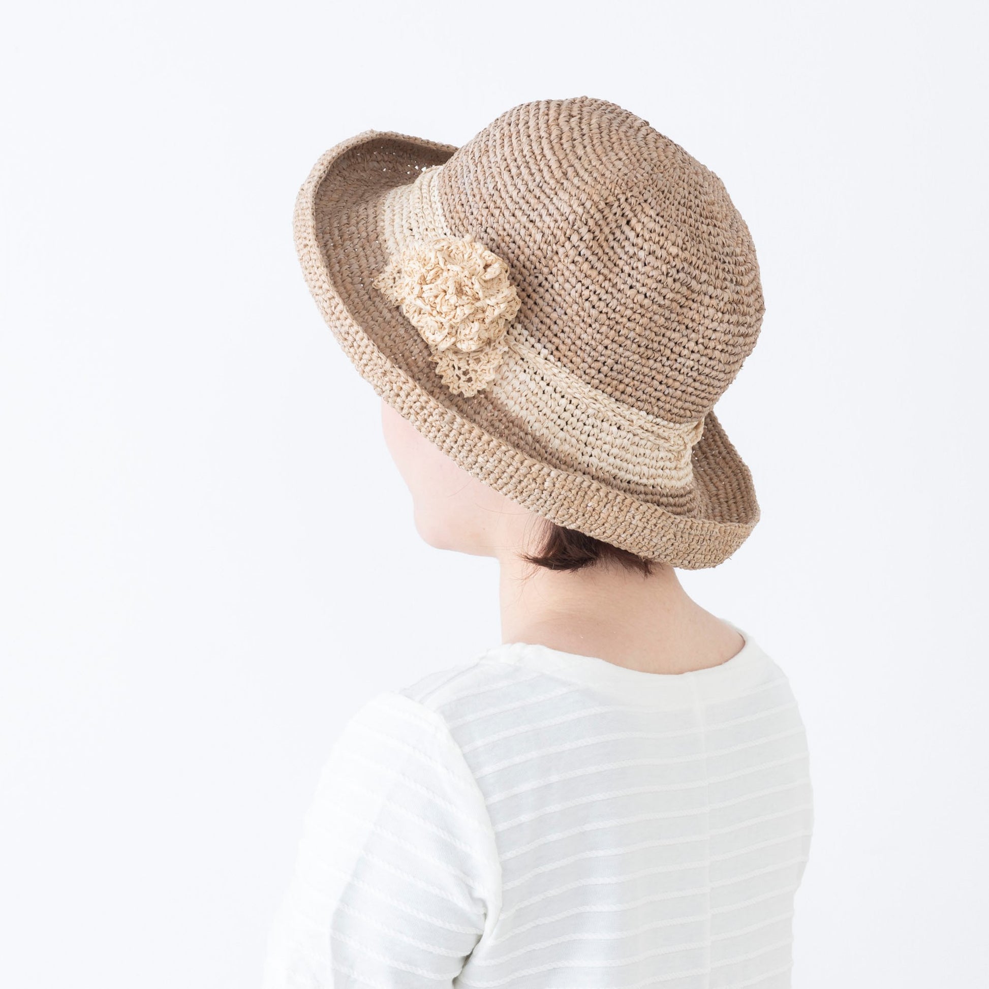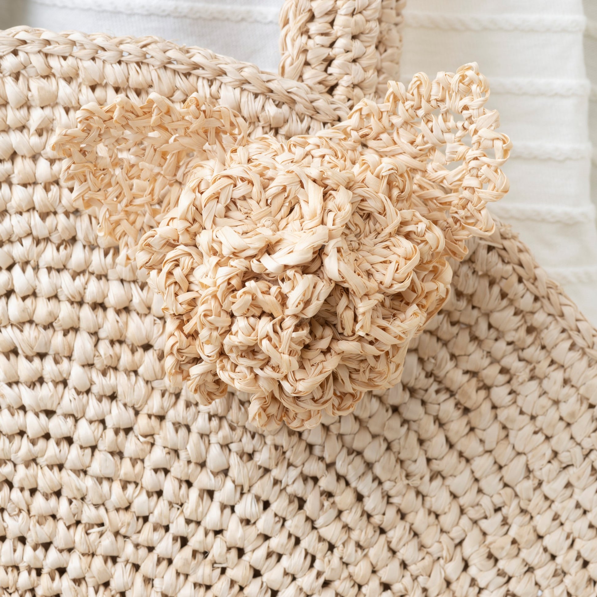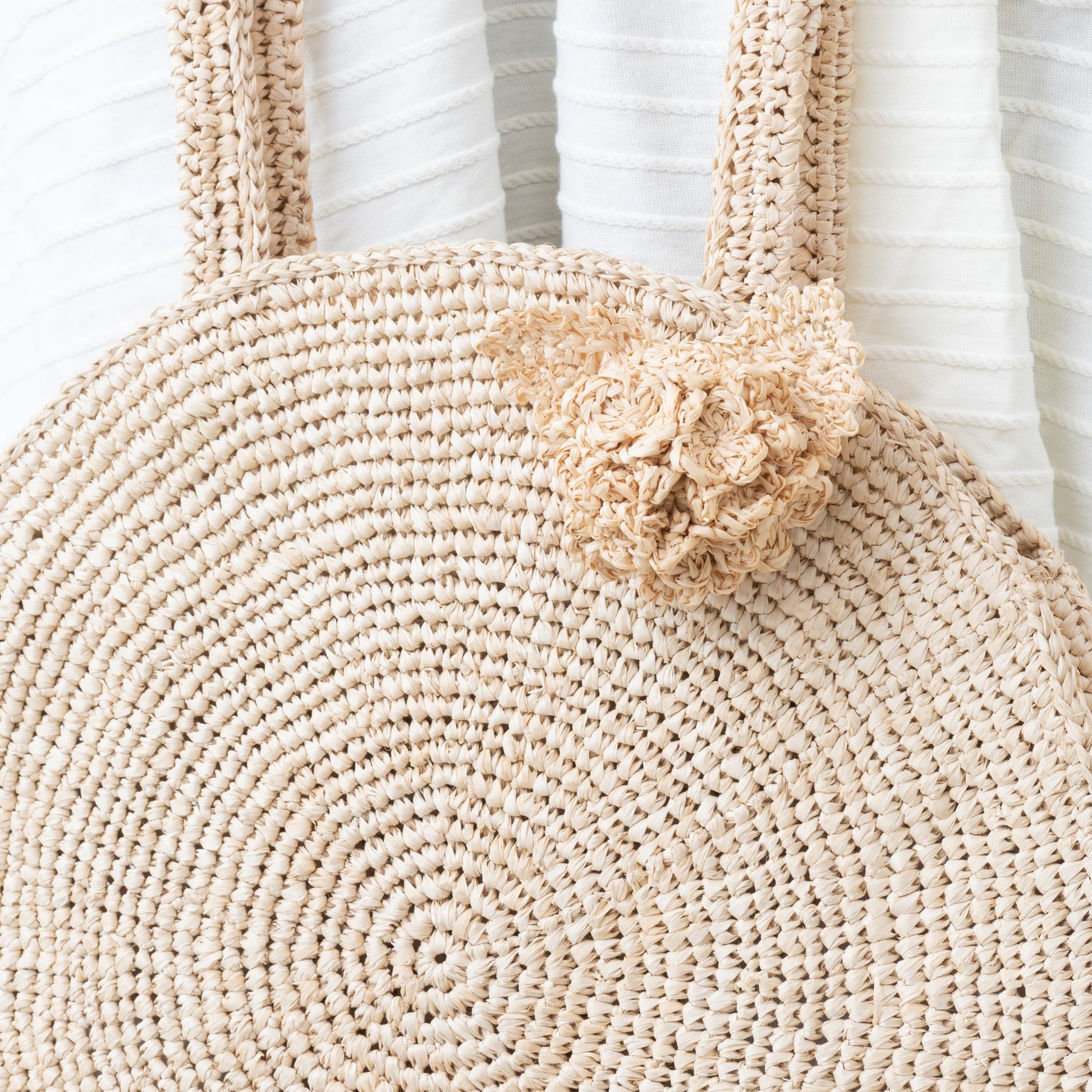 Raffia’s colour is affected by the weather and humidity during the time of spinning and may vary slightly. The actual colour may also differ depending on your display settings. Raffia is prone to fraying. Do not snag and avoid strong friction. Store in a cool and well-ventilated area.