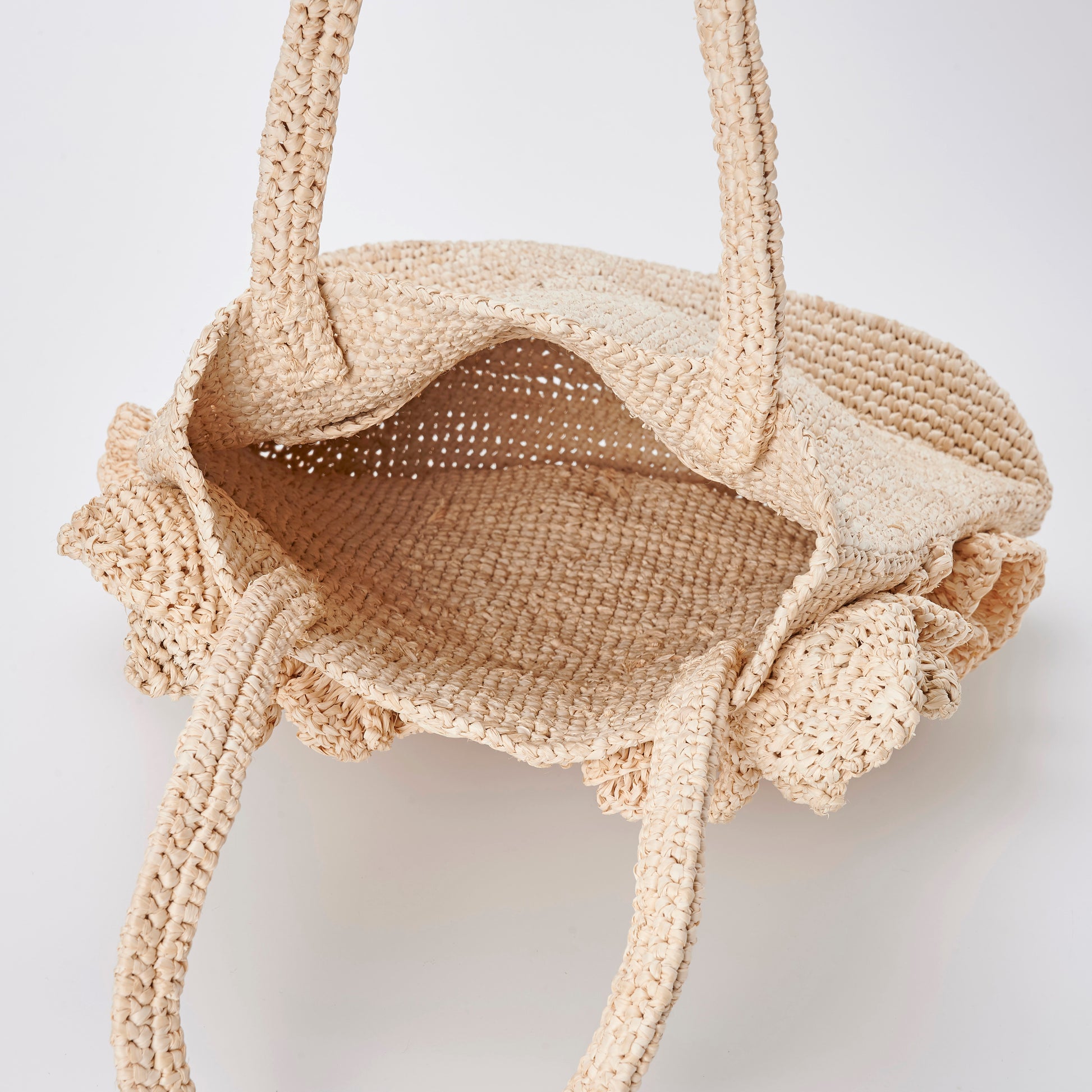 - Due to the delicate nature of raffia fibers, please avoid catching the bag on sharp objects.