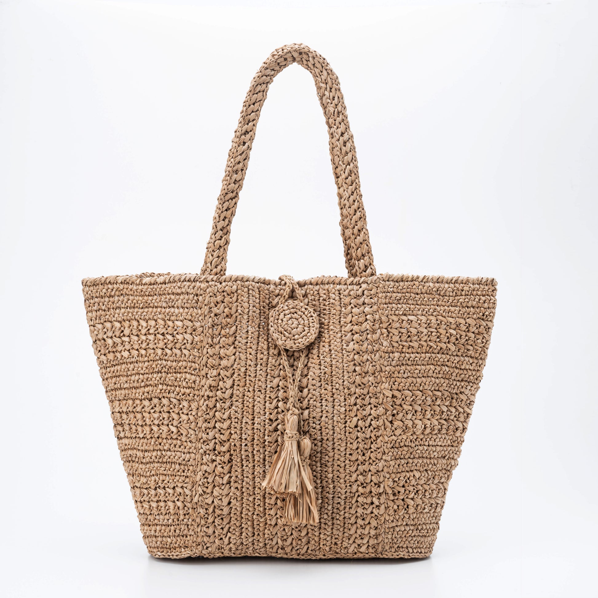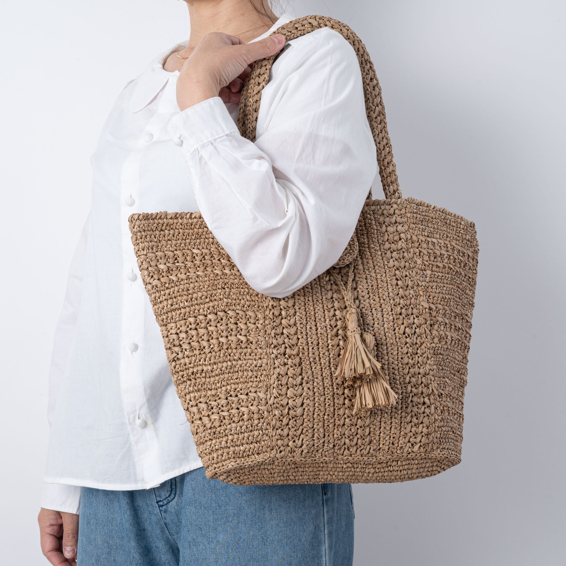 Hand Crochet Raffia Bag - TASSEL (Chocolate)